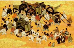 「六条御息所と葵上の車争い」 住吉如慶画・源氏物語画帖