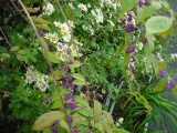 嵯峨野を後にしようとした時、路傍の家の前栽に咲き乱れていたのは、紫式部と嵯峨菊でした。まるで、「私達はやっぱり良い取り合わせでしょう」とでも言いたげに。